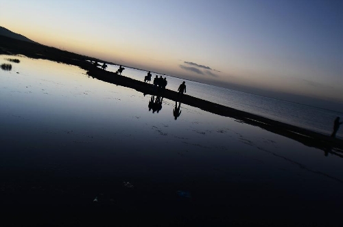 People visit the Qinghai Lake in Xining, capital of northwest China's Qinghai Province, Oct. 3, 2013. Qinghai Lake received numbers of tourists during the week-long National Day holiday. (Xinhua/Wu Gang)