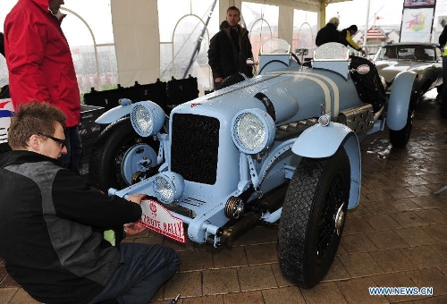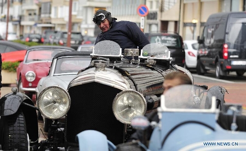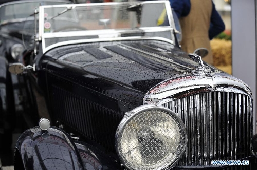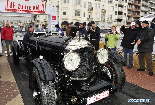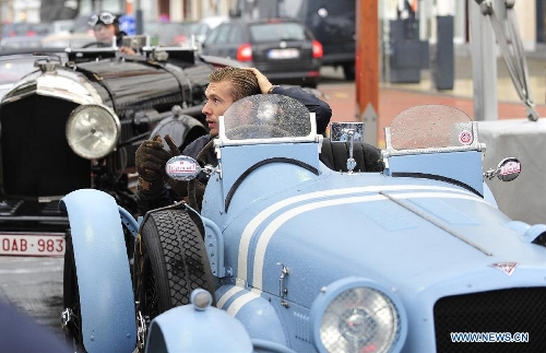 Photo taken on Oct 10, 2013 in Knokke, Belgium, shows a Bentley classic car that is under technique check prior to Zoute Rally of the Zoute Grand Prix. A total of 165 vintage cars, with more than 100 of them were built between 1920 and 1965, have registered for the 2-day rally this year which begins from Friday. (Xinhua/Ye Pingfan)