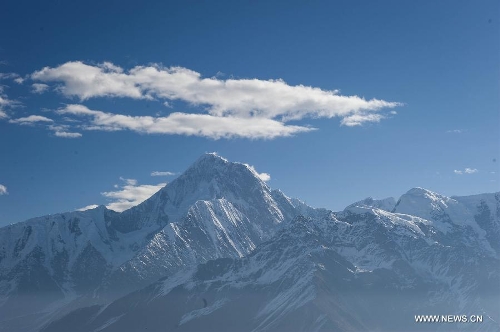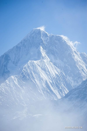 Photo taken on Oct. 15, 2013 shows the peak of Minya Konka, in Kangding County, southwest China's Sichuan Province. Gongga Shan, or Minya Konka, is the "King of Sichuan Mountains" with the highest peak of 7,556 meters. Situated in the Daxue Shan mountain range on the eastern Tibetan plateau, it is a sacred mountain to the Tibetans, between Daduhe and Yalongjiang rivers. (Xinhua/Jiang Hongjing)