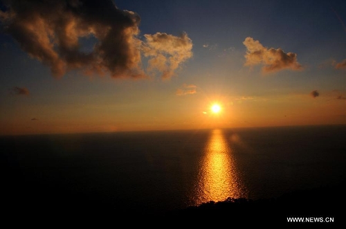 Photo taken on Oct. 27, 2013 shows the sunset in Dingli cliffs, Malta. Dingli Cliffs, 13 kilometers from the capital Valletta, are the highest point of Malta at around 253 metres above sea level. The area is popular for country walks and picnics and offers not only open sea views over the tiny, but also a good vantage point over Malta. Dingli cliffs are also chosen by Times of Malta as "best places to kiss in Malta" . (Xinhua/Li Jia)