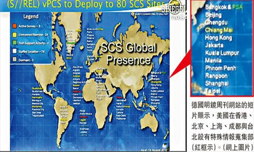 A video from Spiegel Online Shows NSA has 80 SCS sites worldwide, including in big cities such as Beijing, Shanghai and Hong Kong. (Photo: haiwainet. cn)