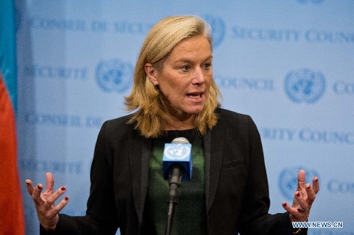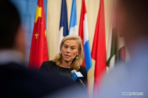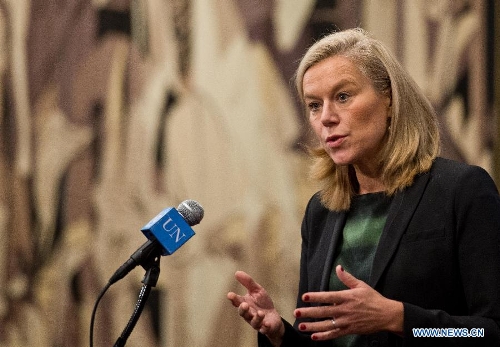Sigrid Kaag, the special coordinator of the Joint Mission of the Organization for the Prohibition of Chemical Weapons (OPCW) and the United Nations, speaks during a press briefing at the UN headquarters in New York, on Nov. 5, 2013. Kaag said that the progress of the mission's progress in the destruction of Syria's stockpiles of chemical weapons was made due to "quick and construction collaboration" from Damascus. (Xinhua/Niu Xiaolei)