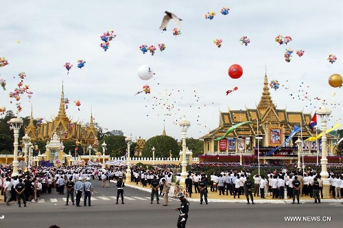 People attend the independence day celebration in Phnom Penh, Cambodia, Nov. 9, 2013. Cambodia celebrated the 60th anniversary of its independence on Saturday. (Xinhua/Sovannara)