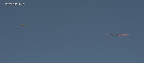 A plane flies with a banner saying "Boycott ABC!" over the headquarters of the American Broadcasting Company (ABC) to protest against its rhetoric of racial discrimination in Burbank, California, the United States, Nov. 9, 2013. (Xinhua/Yang Lei)