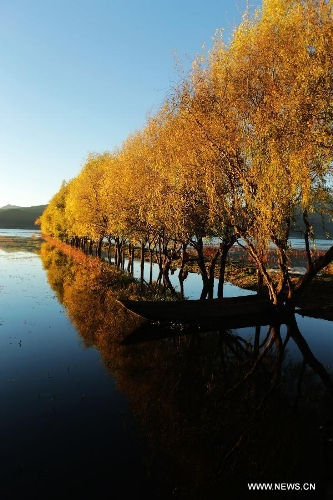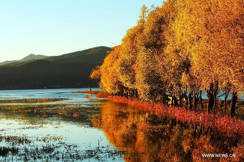 Photo taken on Nov. 9, 2013 shows the scenery of the Lashi Lake, 10 kilometers west of Lijiang, southwest China's Yunnan Province. (Xinhua/Xing Guangli)Related:Autumn scenery in Qixia Mounatin, E ChinaScenery of Yulong Snow MountainGorgeous scenery of Horsetail fall in Yosemite National Park