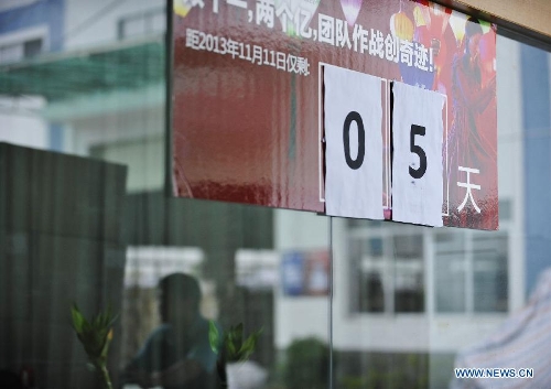 Workers check goods at the logistics center of a Tmall online shop in Guangzhou, capital of south China's Guangdong Province, Nov. 5, 2013, making preparations for the upcoming "Singles' Day" shopping promotion on Nov. 11. Alibaba Group, operator of China's biggest e-commerce platforms, will launch a shopping festival on Nov. 11 on its consumer-oriented platform Tmall.com, highlighting big discounts. Sales on Tmall.com reached 13.2 billion yuan ($2.2 billion) on that day last year. (Xinhua/Liang Xu)