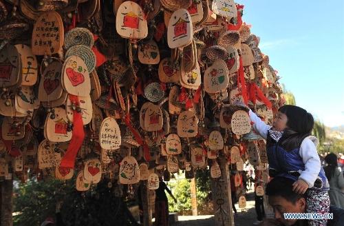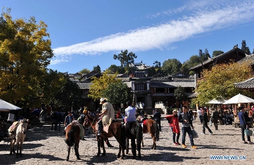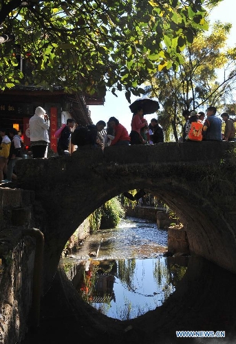 People visit the old town of Lijiang, southwest China's Yunnan Province, Nov. 10, 2013. Lijiang, which covers the title of World Cultural, Natural Heritage and Memory of the World Programme, has become a popular tourist attraction. (Xinhua/Lin Yiguang)