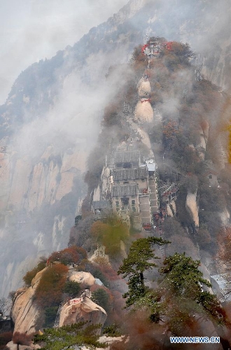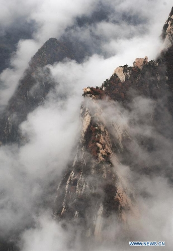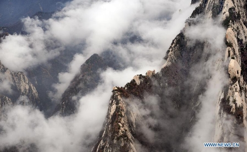 Photo taken on Nov. 12, 2013 shows the scenery of the Huashan Mountain, a famous tourist destination in northwest China's Shaanxi Province. (Xinhua/Tao Ming)