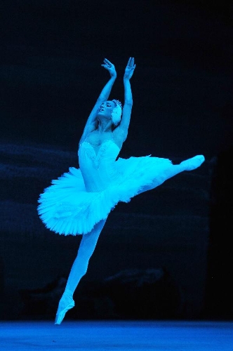 A ballerina rehearses "Swan Lake" at Singapore's Esplanade, Nov. 20, 2013. Russia's Bolshoi Ballet begins its 6-show performance of "Swan Lake" in Singapore's Esplanade on Wednesday. (Xinhua/Then Chih Wey)