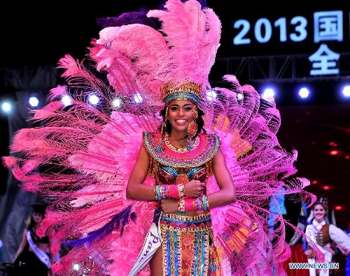 A Panamanian contestant poses during 2013 International Yacht Model Contest in Sanya, south China's Hainan Province, Nov. 23, 2013. 2013 International Yacht Model Contest concluded here Saturday evening. (Xinhua/Zhang Yongfeng)