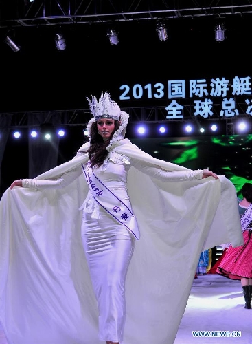 A Danish contestant poses during 2013 International Yacht Model Contest in Sanya, south China's Hainan Province, Nov. 23, 2013. 2013 International Yacht Model Contest concluded here Saturday evening. (Xinhua/Zhang Yongfeng)