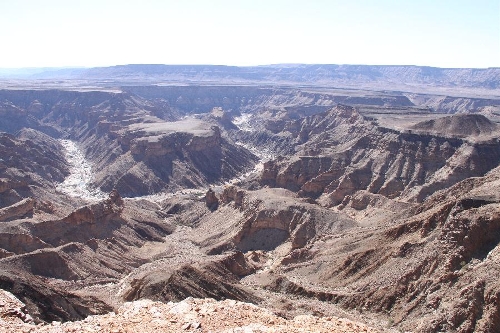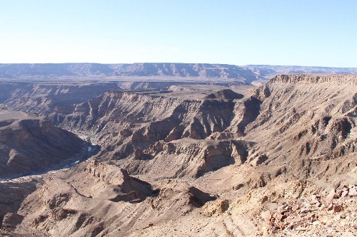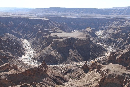 Photo taken on Nov. 21, 2013 shows a part of the Fish River Canyon in southern Namibia. Situated in southern Namibia, Fish River Canyon is the largest canyon in Africa and one of the most visited places in the country. It measures about 160km in length, up to 27km in width and 550m at its deepest point. With a history of hundreds of millions of years, the canyon is a unique combination of tectonic, volcanic, climatic and erosional forces that created this "geologist's paradise". (Xinhua/Gao Lei)