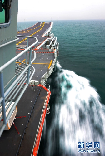 This is the first time the Liaoning has conducted a cross-sea training voyage since it was commissioned into the People's Liberation Army (PLA) Navy last year.(Xinhua photo)