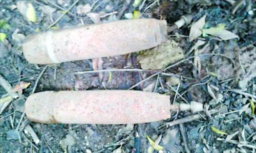 The woman’s 33-year-old daughter surnamed Deng said her father had found the rusty pair of 40-centimeter-long bombs while digging in the sand of a riverbed 25 years ago.
