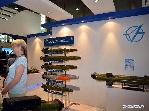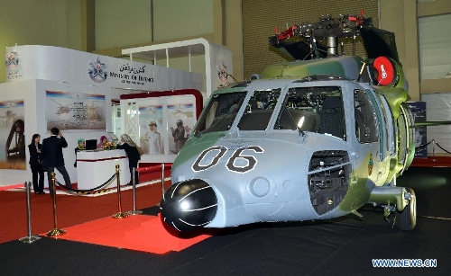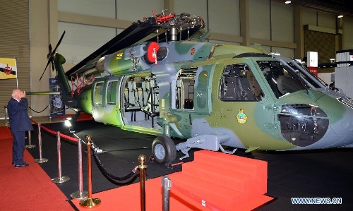 An S-70i Black Hawk helicopter is seen at the BRIDEX 2013 in Bandar Seri Begawan, Brunei, Dec. 4, 2013. The 4th Brunei Darussalam International Defence Exhibition (BRIDEX 2013) opened Tuesday at the BRIDEX Exhibition Centre in Brunei. (Xinhua/Zheng Jie)