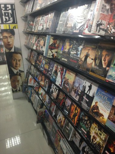 Some of the vast range of DVDs found at a DVD shop on Shuicheng Road South Photo: Zhang Yu/GT