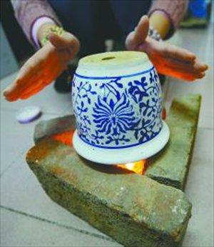 The DIY heater, made from only two flowerpots and several candles surrounded by a triangle of bricks, is capable of increasing room temperature up to 3C in 30 minutes, according to Jinan Daily's City Lady on December 9.