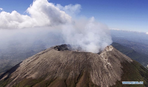 Photo provided on Dec. 30, 2013 by the Ministry of Environment of El Salvador shows the Chaparrastique Volcano of El Salvador. El Salvador's Chaparrastique Volcano erupted early Sunday, spewing a tall column of ash and smoke into the sky. (Xinhua/Ministry of Environment of El Salvador)