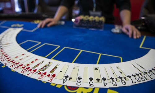 Cards laid out during a game of Texas Hold 'em. Photo: Li Hao/GT