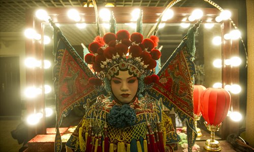 Peking Opera makeup exaggerates one's natural facial structure. Photo: Li Hao/GT