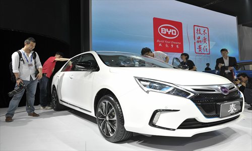 China's BYD electric cars have not been getting the level of government support the company hoped for. Photo: CFP