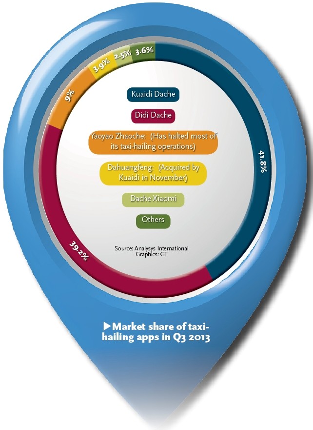 Market share of taxi-hailing apps in Q3 2013 Source: Analysys International Graphics: GT