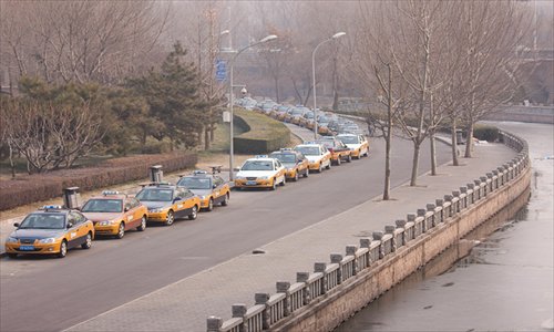Taxis are seen parked on a road near Beijing's Deshengmen on January 4. Photo: IC