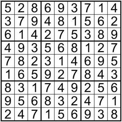Fill in the grid with numbers from 1 to 9 so that each column, each row, and each of the nine 3×3 boxes contains the digits from 1 to 9 only once.