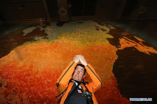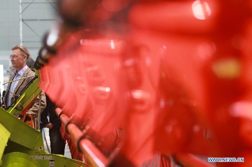 A visitor views a farm equipment at the CeBIT tech fair in Hanover, Germany, March 8, 2014. CeBIT, the world's leading exhibition in the communication and information technology industry, will open to public on Monday in Hanover, Germany. The five-day event attracts about 3,500 exhibitors from 70 different countries and regions. (Xinhua/Zhang Fan)