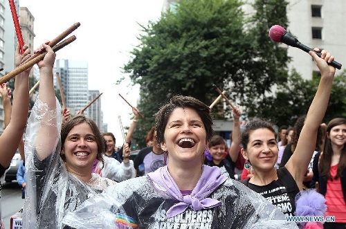 Women participate in a rally for women's rights to celebrate International Women's Day, in Sao Paulo, Brazil, on March 8, 2014. (Xinhua/Rahel Patrasso)