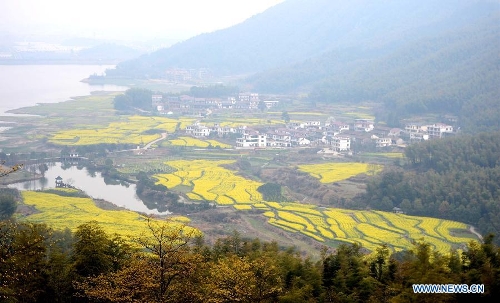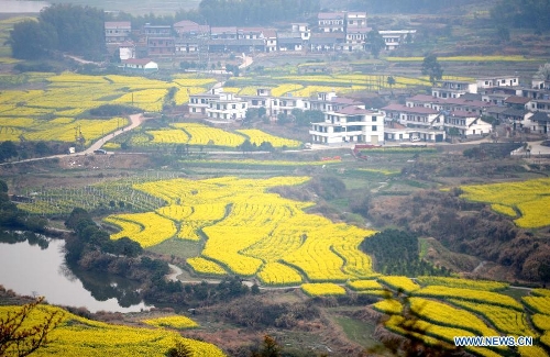 Photo taken on March 18, 2014 shows the scenery of blooming rape flowers in Panxi Village, Nanchang, East China's Jiangxi Province. (Xinhua/Zhou Ke)