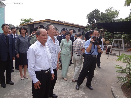 Chinese Ambassador to Myanmar Yang Houlan lays a wreath at the Cemetery of the Chinese Expeditionary Army in Toungoo, Myanmar, on April 4, 2014, ahead of China's traditional Qingming Festival, or Tomb-sweeping Day. (Xinhua/Zhang Yunfei)