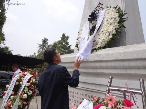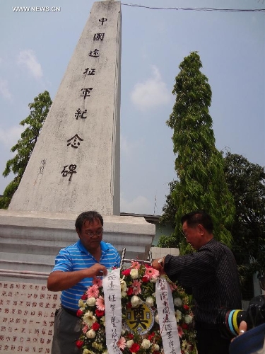 Overseas Chinese lays a wreath at the Cemetery of the Chinese Expeditionary Army in Toungoo, Myanmar, on April 4, 2014, ahead of China's traditional Qingming Festival, or Tomb-sweeping Day. (Xinhua/Zhang Yunfei)