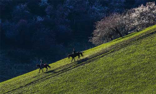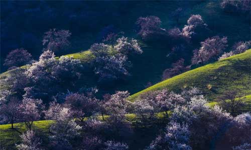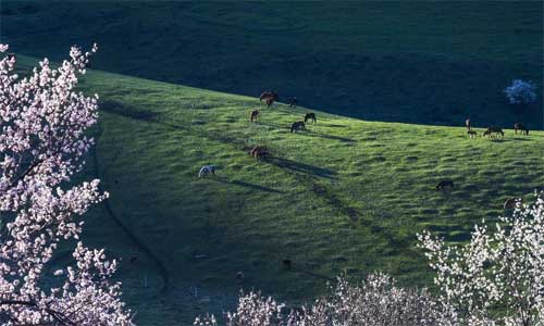 Photo taken on April 9, 2014 shows blooming apricot blossoms in Turgen Township of Xinyuan County, northwest China's Xinjiang Uygur Autonomous Region. Photo: Xinhua