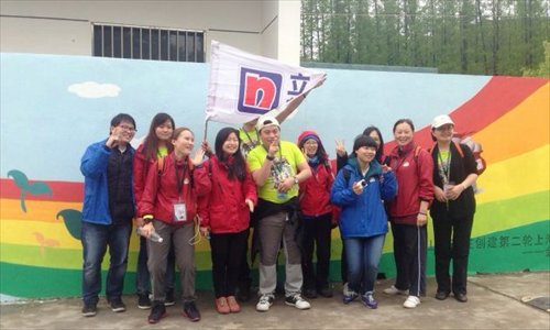 Nippon Paint China employees take a group photo in front of a mural along the route of the walkathon on April 19 in Shanghai. Photo: Courtesy of Nippon Paint China