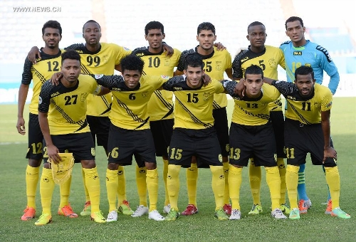 Players of Oman's fanja SC pose for a group photo before their AFC CUP 2014 football match against Kuwait's Al Kuwait SC in Kuwait City, Kuwait, on April 24, 2014. Kuwait's Al Kuwait SC won 4-0. (Xinhua/Noufal Ibrahim)
