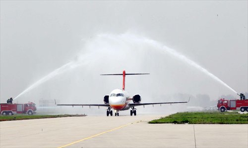 An ARJ21-700 jet lands on the runway of Yanliang Airport in Xi'an, Northwest China's Shaanxi Province on Monday. Photo: CFP