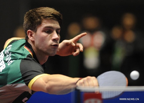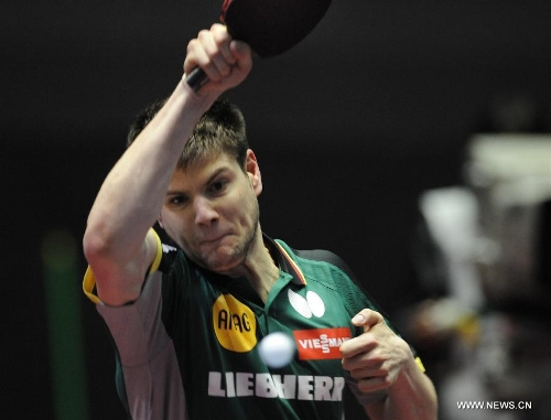 Dimitrij Ovtcharov of Germany returns a shot to Cheung Yuk of China's Hong Kong during the men's singles match at Zen Noh 2014 World Team Table Tennis Championships in Tokyo, Japan, April 30, 2014. (Xinhua/Stringer)