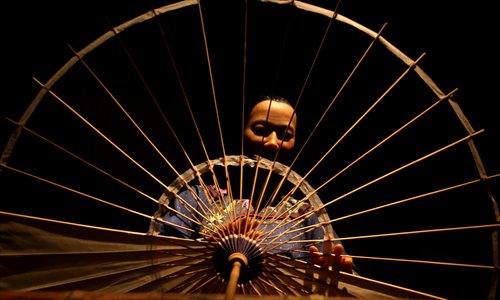 A wax statue showing the oiled-paper umbrella making process is displayed at the China Umbrella Museum in Hangzhou, Zhejiang Province. Photo: IC