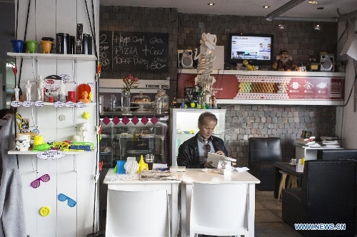 A client observes an object made by a 3D printer in the 3D LAB fab&cafe in Buenos Aires, capital of Argentina, May 9, 2014. The 3D LAB fab&café is a cafe and cooperative work space that offers 3D printer machines to the clients. (Xinhua/Martin Zabala)