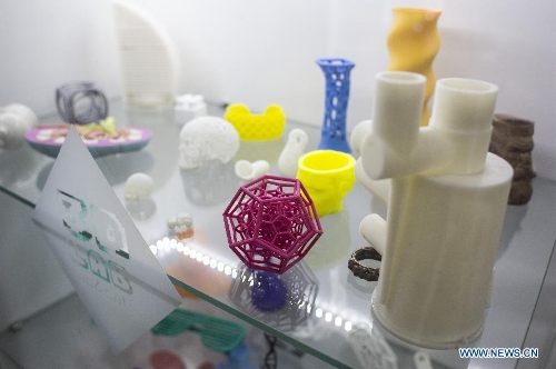 Photo taken on May 9, 2014 shows objects made by 3D printers in the 3D LAB fab&cafe in Buenos Aires, capital of Argentina. The 3D LAB fab&café is a cafe and cooperative work space that offers 3D printer machines to the clients. (Xinhua/Martin Zabala)