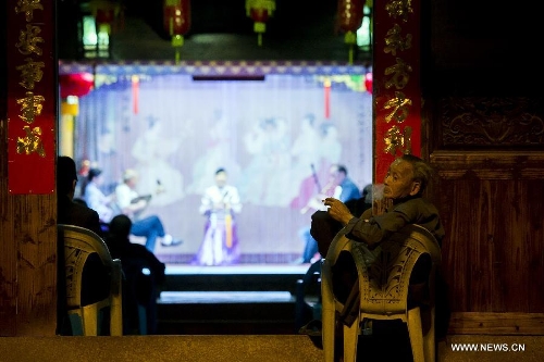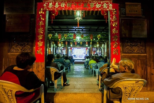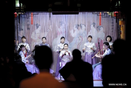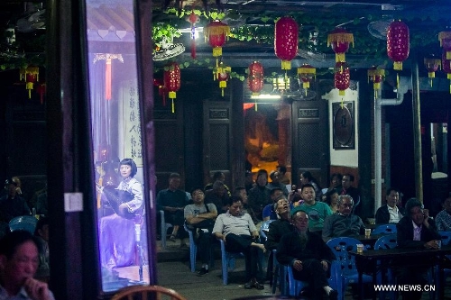 Tourists enjoy the performance of Nanyin, an ancient Chinese folk music art form originated from southeast China's Fujian Province, at a tea house in Quanzhou, Fujian Province, May 8, 2014. Nanyin, known as the "living fossil" of ancient Chinese music, literally means music in the south and is a traditional opera in Fujian dialect. Nanyin was spread to Southeast Asia and also introduced to Europe and America by thousands of overseas Chinese, when the Maritime Silk Road flourished during ancient China's Song(960-1279) and Yuan(1271-1368) Dynasties. In 2006, Nanyin was enlisted as a National Non-material Cultural Heritage. Three years later, it was listed as a World Human Verbal and Intangible Cultural Heritage by UNESCO. (Xinhua/Jiang Kehong)