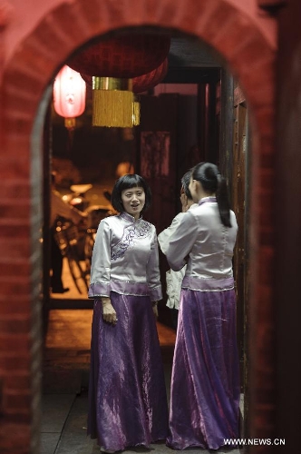 Performers of Nanyin, an ancient Chinese folk music art form originated from southeast China's Fujian Province, take a rest at a tea house in Quanzhou, Fujian Province, May 8, 2014. Nanyin, known as the "living fossil" of ancient Chinese music, literally means music in the south and is a traditional opera in Fujian dialect. Nanyin was spread to Southeast Asia and also introduced to Europe and America by thousands of overseas Chinese, when the Maritime Silk Road flourished during ancient China's Song(960-1279) and Yuan(1271-1368) Dynasties. In 2006, Nanyin was enlisted as a National Non-material Cultural Heritage. Three years later, it was listed as a World Human Verbal and Intangible Cultural Heritage by UNESCO. (Xinhua/Jiang Kehong)