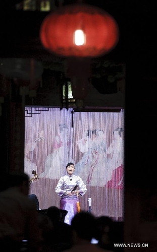 A singer performs Nanyin, an ancient Chinese folk music art form originated from southeast China's Fujian Province, at a tea house in Quanzhou, Fujian Province, May 9, 2014. Nanyin, known as the "living fossil" of ancient Chinese music, literally means music in the south and is a traditional opera in Fujian dialect. Nanyin was spread to Southeast Asia and also introduced to Europe and America by thousands of overseas Chinese, when the Maritime Silk Road flourished during ancient China's Song(960-1279) and Yuan(1271-1368) Dynasties. In 2006, Nanyin was enlisted as a National Non-material Cultural Heritage. Three years later, it was listed as a World Human Verbal and Intangible Cultural Heritage by UNESCO. (Xinhua/Jiang Kehong)