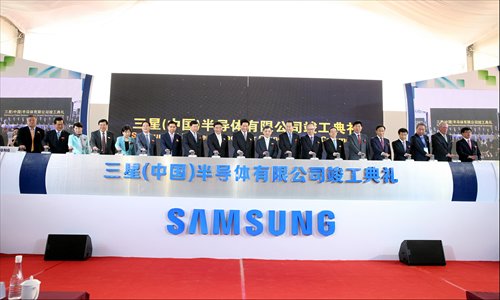 Shaanxi provincial officials, the Korean ambassador to China and senior management of Samsung Electronics are present at the opening ceremony of the Samsung China Semiconductor facility in Xi'an, Shaanxi Province May 9. Photo: Courtesy of Samsung China Semiconductor