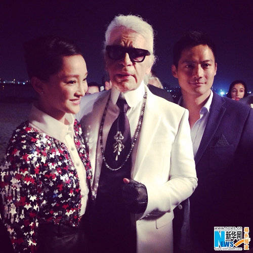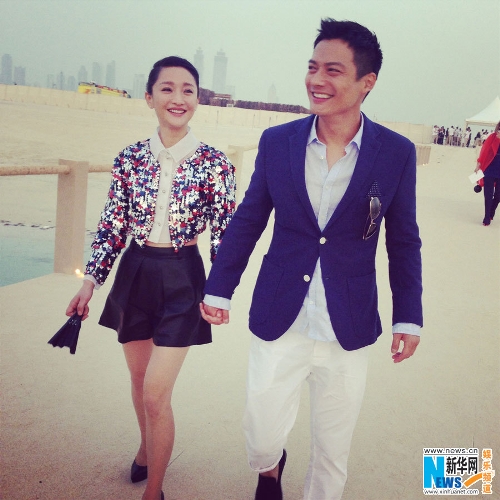 Chinese actress Zhou Xun shows in Dubai to attend early spring fashion show of an int'l brand with her boyfriend Gao shengyuan. This is the first time that the couple appeared in public since she posted a picture of her boyfriend and her on Weibo. (Photo: xinhuanet ent)
