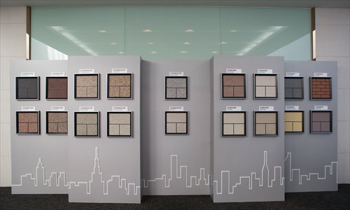 Samples of environmentally friendly and attractive building facade materials. Photo: Courtesy of Nippon Paint China