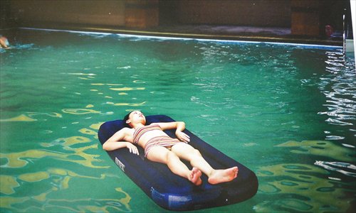 Villa resident Ms Fan enjoys leisure time in the compound's swimming pool, which is filled with hot spring water. Photo: Zhao Liwen/S?ina