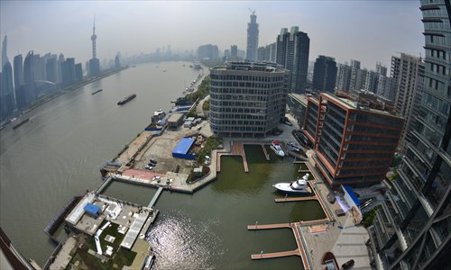 Pleasure boats tied up at a pier at the Shanghai International Shipping Center on the Huangpu River Photo: CFP