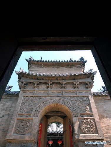 Photo taken on May 24, 2010 shows the stone relief on the main gate of the Anguo Temple, which was first established during the Sui Dynasty (581-618 AD), in Licun Township of Shanxian County, central China's Henan Province. A large number of architectural sculptures have been preserved in historical sites of Henan, which is one of the cradles of the Chinese civilization. Many of the sculptures, created from stones, bricks, or wood, were used as building parts of residences, shrines and memorial archways, among other architecture types. Underlining both the mood and the details, these sculptures have themes including daily life, legends, myths and opera scenes. (Xinhua/Wang Song)